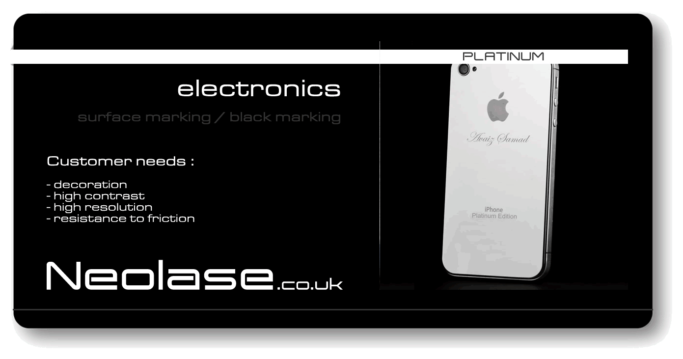 Neolase is a UK-based laser marking and engraving job shop, offering high-quality, custom solutions for various industries and private individual customers. With over 25 years of experience, we specialize in precision marking and engraving on metals, plastics, glass, wood and more. We have built a strong reputation for delivering fast, reliable, and professional services to businesses in automotive, aerospace, medical, consumer goods and many other sectors ... at an affordable price.